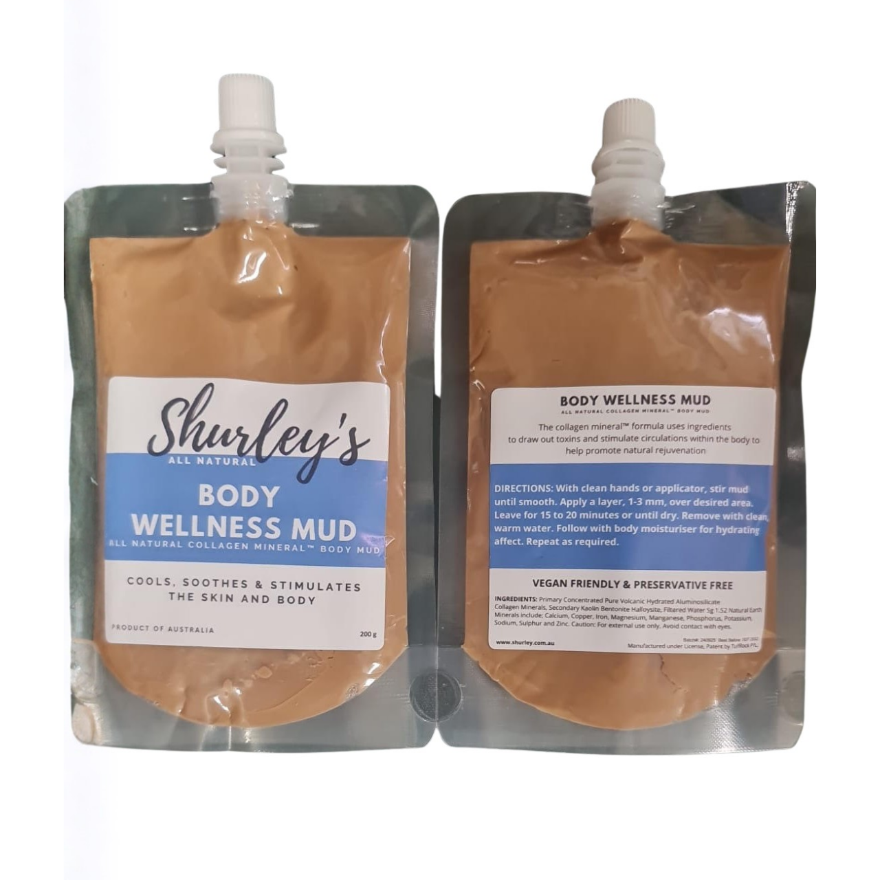 Shurley’s All Natural Body Wellness Mud is designed to draw out toxins and stimulate circulation using an ancient volcanic collagen mineral™ formula which cools, soothes and stimulates the body to promode natural rejuvination. Cools, soothes and stimulates the skin & body.